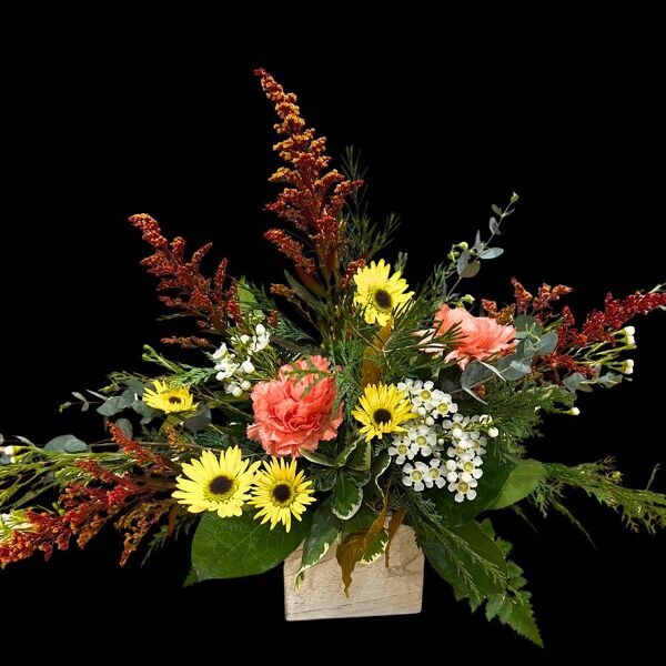 Warm up any space with this fresh, warm centerpiece showcasing the warm hues of fall - welcoming the season's change!
